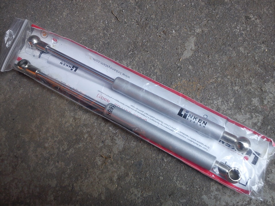 Эпопея с газовыми амортизаторами началась ещё в прошлом году. Первые амики я поставил на 80N и они практически справлялись со своей задачей (хотя крышка проклеяна виброй), первый раз открываешь рукой, а последующие разы крышка открывается сама. Но после зимы один амик пробил. Решил взять новые, но мощнее на 100N — результат тот же, первый раз рукой, последующие разы сама. Дальше решил взять самые мощные, какие только нашёл в магазине нашего города, на 120N — результат тот же, хотя по качеству они были лучше (типа Германия) и крышка открывалась плавнее. И вот на днях нарыл на просторах инета амики на 160N и, естественно, купил. Кстати, они поднимают ещё плавнее.
