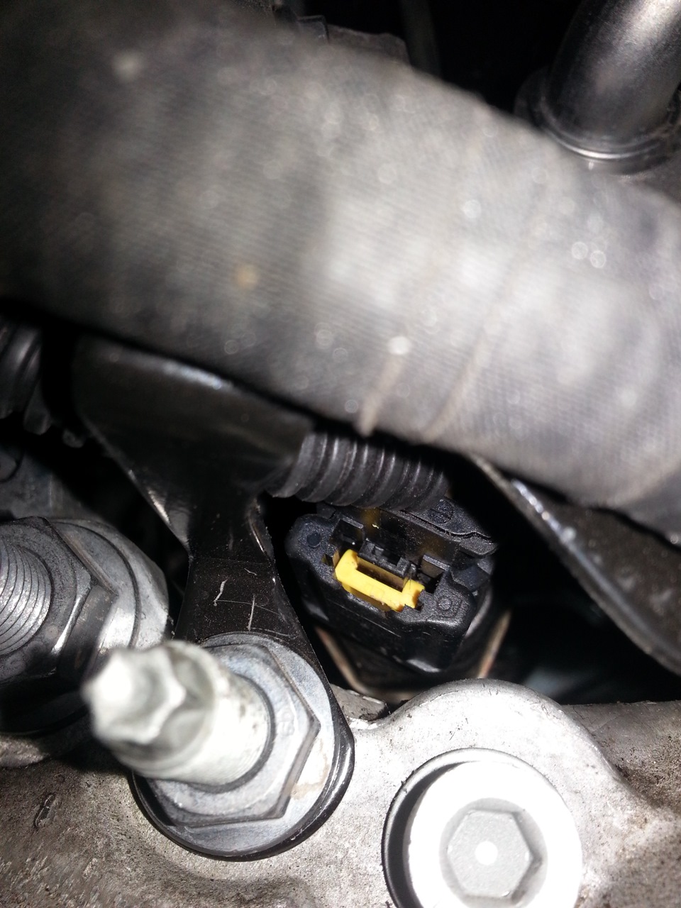 — нужно снять фишку с датчика, засунув плоскую отвертку над желтым фиксатором, с нижней стороны фишки;