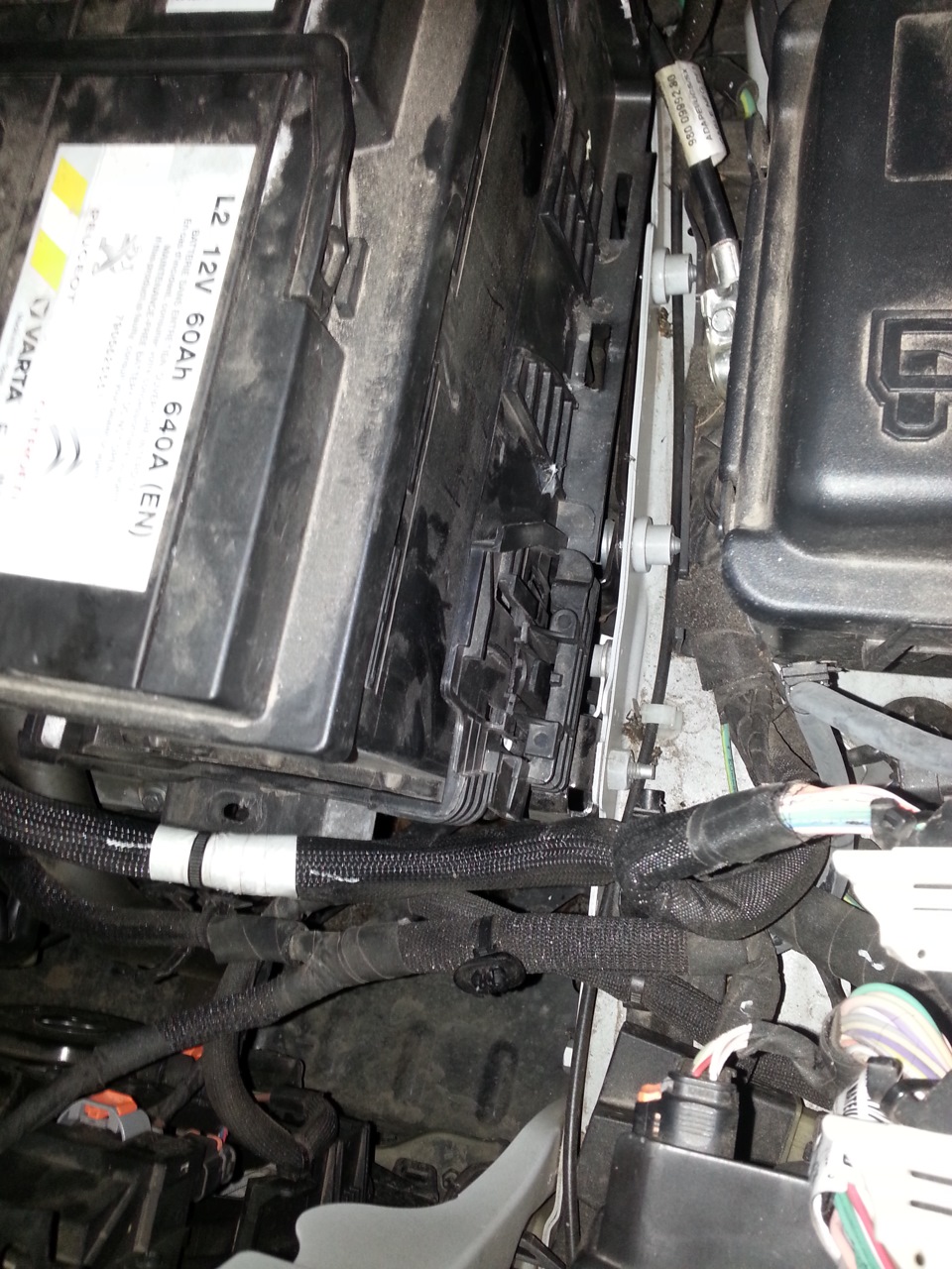 — снять кронштейн крепления аккумулятора, открутив 3 болта и отщелкнуть по переметру проводку;