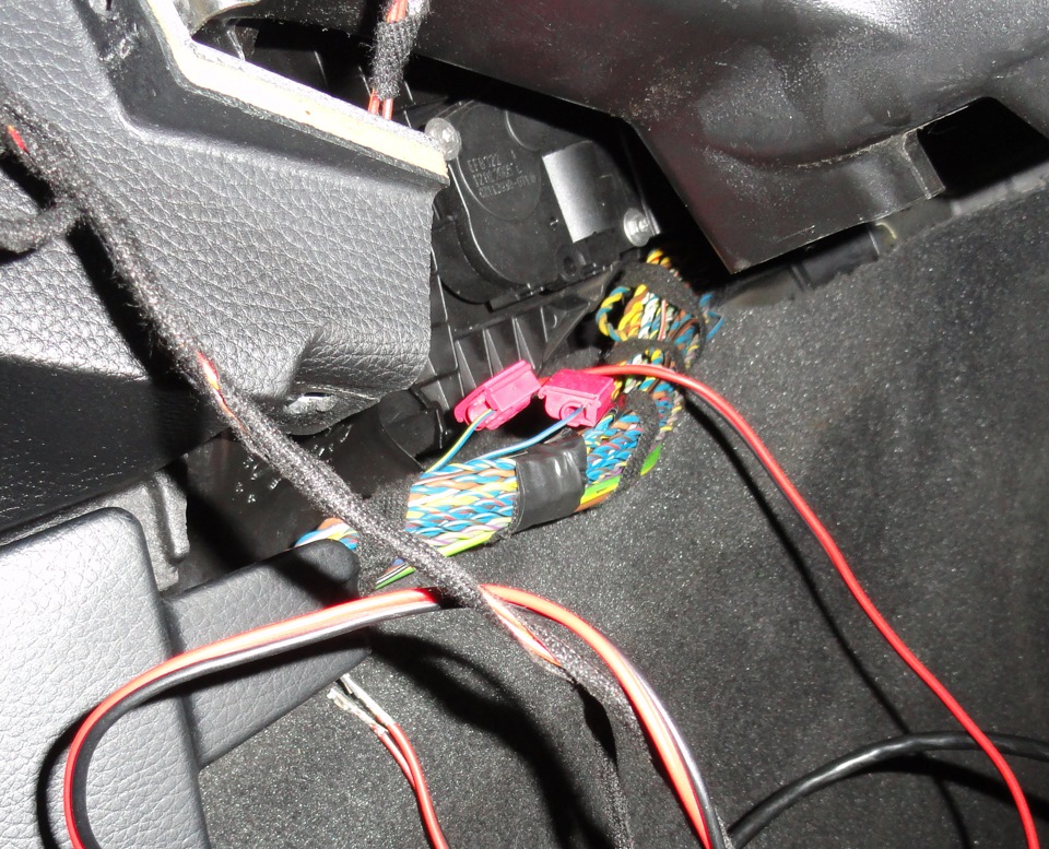Принял решение врезаться в жгут, идущий в салоне, как и описано в WDS кстати. Нашёл провода по цвету, ну как полагается с первого раза не попал. В жгуте они не одни такого цвета))) Блин, а ведь сразу меня смутила косичка из этих проводов.