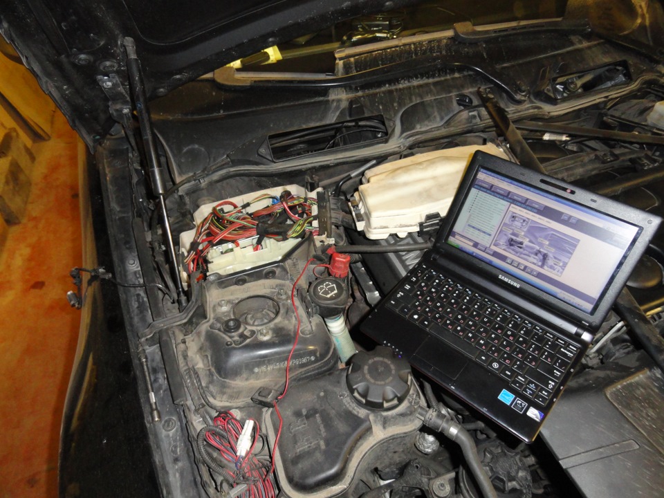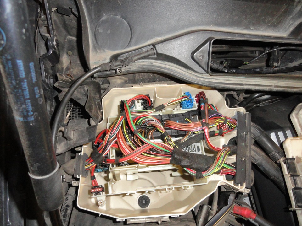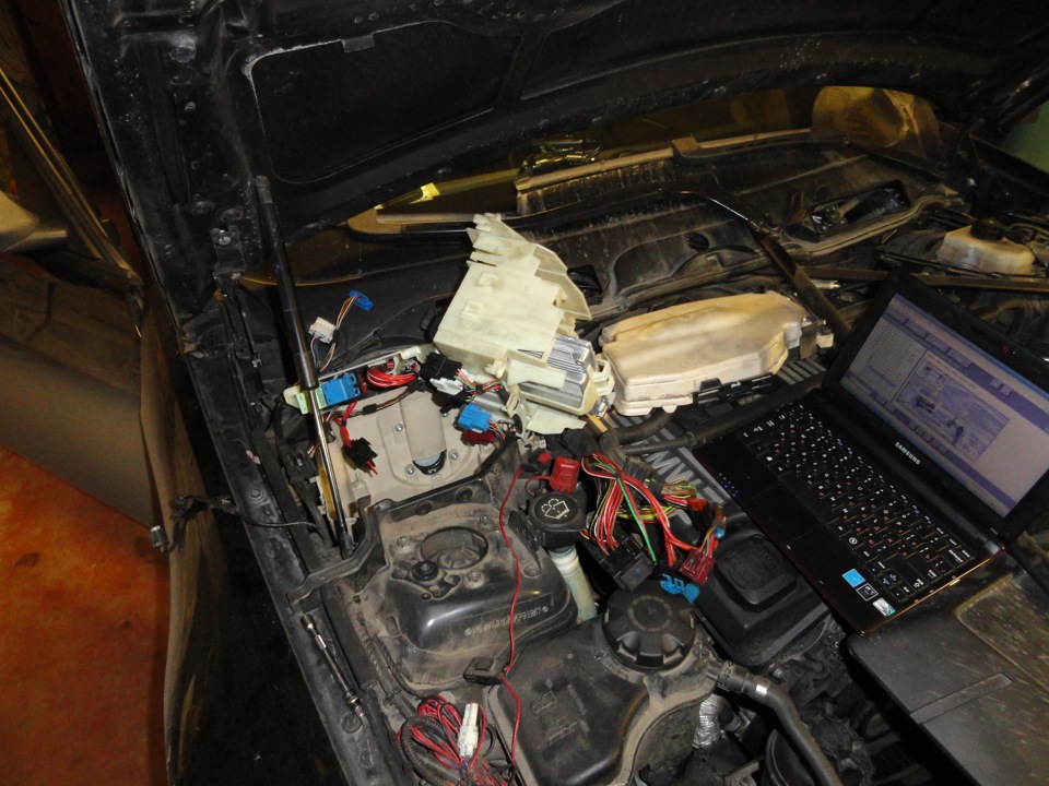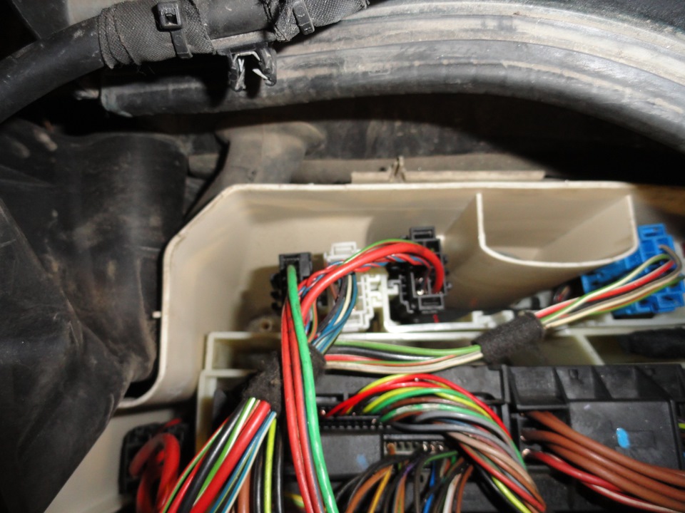 Начал поиски места, куда врезаться в цепь стептроника. Лезть под центральную консоль к ручке АКПП я не хотел изначально. Сначала я хотел припаяться к разъему с пинами стептроника прямо в распределительной коробке ДВС.