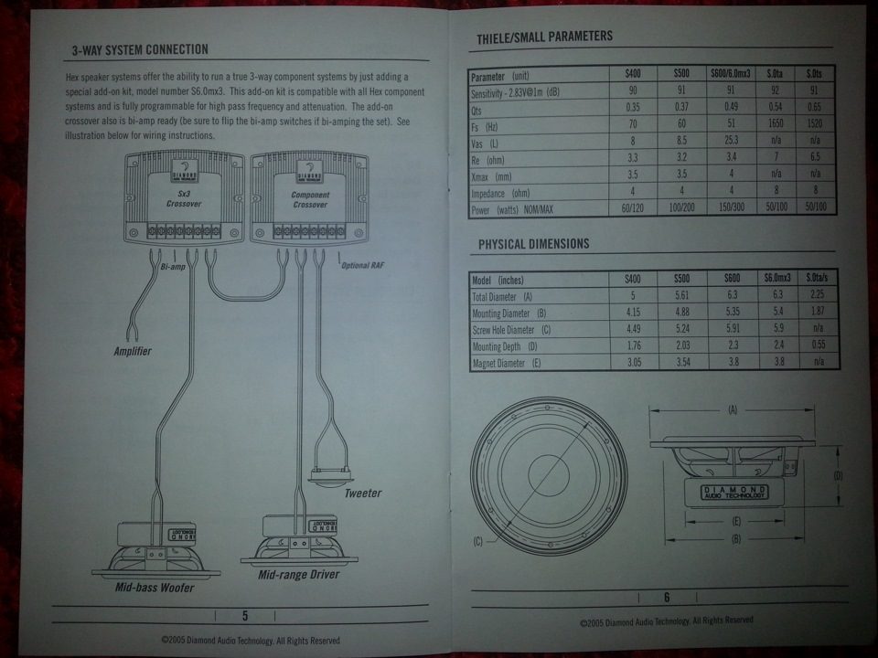 твоя инструкция от самых первых динамиков S6.0m в то время дины были только 120Вт с алюминиевыми пищами позже вышла обновленная линейка S6.0m как 120Вт так и 150 Вт и с шелковыми пищами, параметры практически одинаковые со старыми