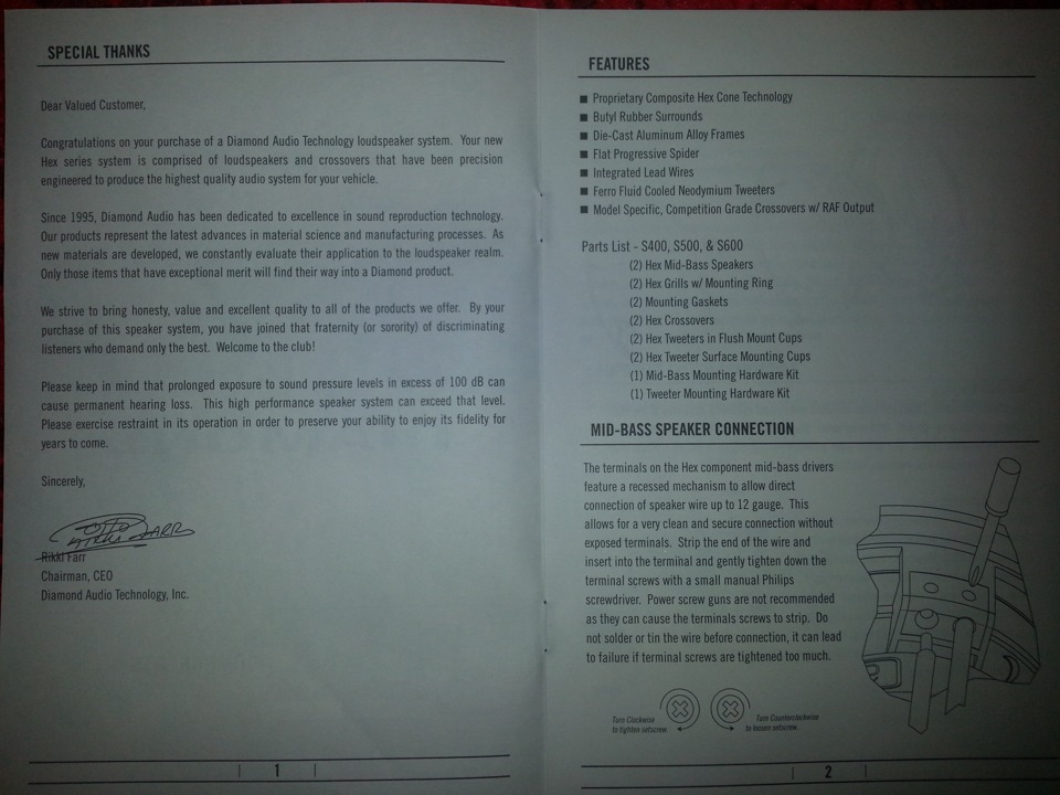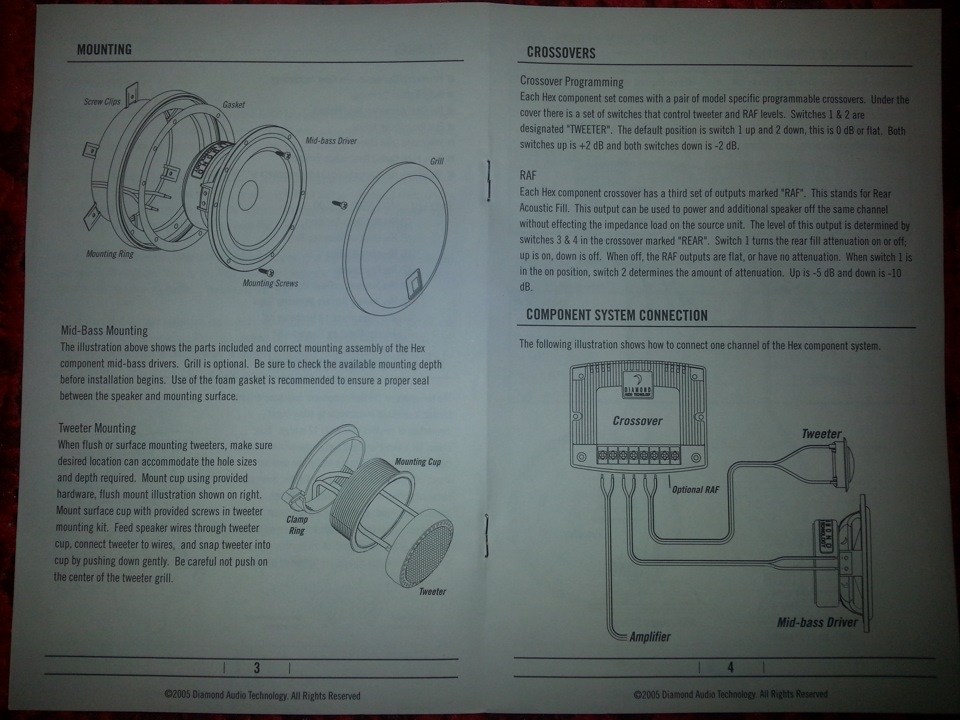 Привет, скорее всего тебе не понадобится, но инструкция к нашим динам должна быть такая: www.manualslib.com/manual…Hex-S400.html#product-HEX S600 Потому как в той, что сфоткана у тебя, отличаются названия динов (S400 против S4.0m), в моем комплекте лежит инструкция как в ссылке. Хочу попробовать набрать в стойках литров 5 и запустить их в ФИ, если прокатит, то от мидов в дверях отказаться. Если верить параметрам из инструкции — может вполне получиться.