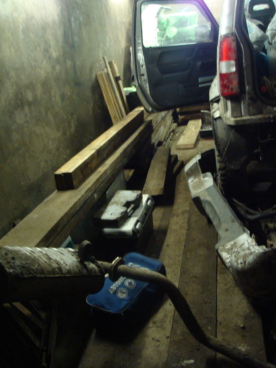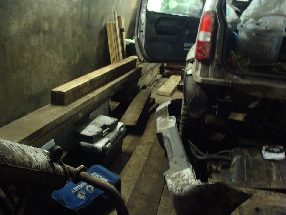 Благодаря героическому терпению брата при тошниловке в 40 км/ч при эвакуации меня до свежевыкопаной мной ямы в его гараже, вталкивании раненного вместе с сестроштурманом в этот самый гараж (и вообще он меня спас с местом ремонта), Джим обрёл убежище на несколько дней чтобы починить своё нутро. Решил сразу начать разбираться с неполадкой, суббота же – делать всё равно надо и начал я лечение Джима в 6 вечера.