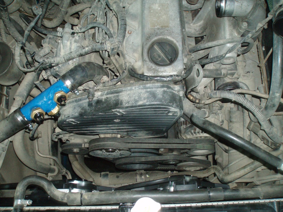 Залез в толстой куртке для замены ремня и поломал отвод на расширительный бачёк.