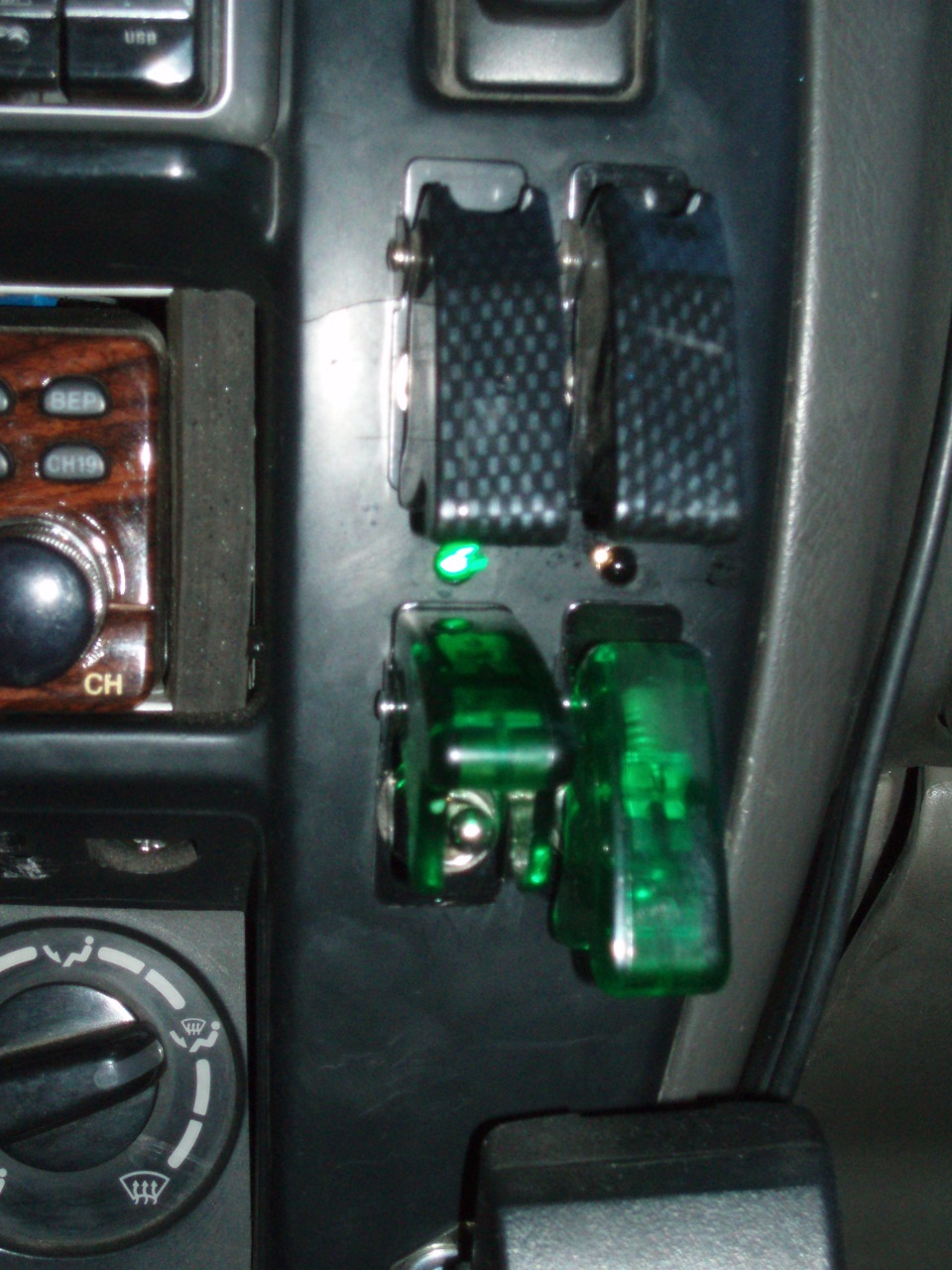 Почти, так как осталось только в салоне поставить аварийные тумблеры, но тут как оказалось проблема, некуда уже ставить дополнительные выключатели, а панели резать не люблю, как правило все допы ставлю либо в заглушки либо во всякого рода пепельницы, но кончились уже и они.