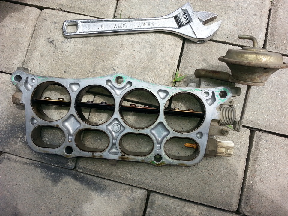 На впускном коллектора моего мотора имеется специальное окошко, которое держится на четырех болтах. Не знаю для чего это окно существует, но заглянув туда однажды решился на чистку коллектора ибо грязи там было…