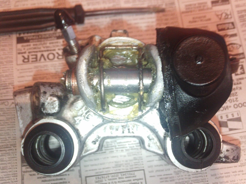 На фото №15 уже собранный суппорт – Внимание для выполнения сборки нам нужен помощник, так как вал ручника Фото №14 упирается в сектор стоящий в пазе вала и его нам нужно вдавить. Я лично вдавливал металлическим прутком около 1 см в диаметре уперая его сверху на сектор.