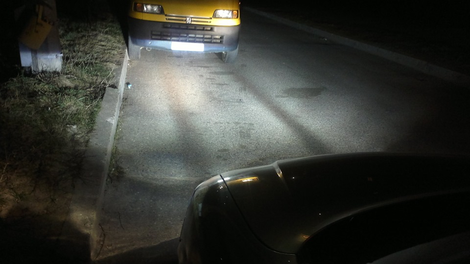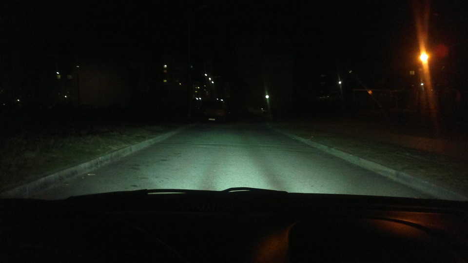 Результатом остался доволен, думал всё будет на много хуже) Не могу только понять, откуда взялись эти две полосы из теней, как будто перед тобой колея. У других, с аналогичными фарами, я такого не замечал, да и с галогенками такого не было.