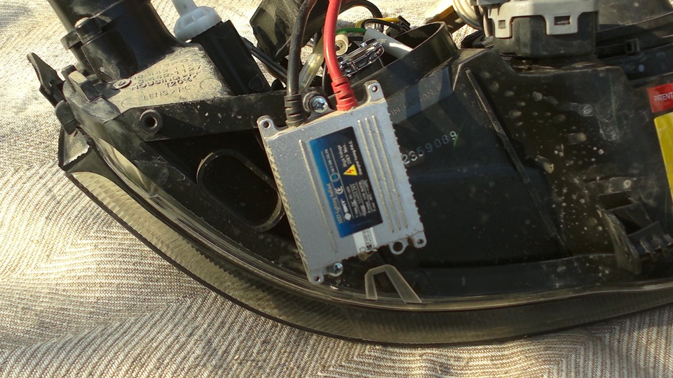 Сама установка заняла примерно полтора часа, ибо места за фарами в притык и работать сугубо не удобно, да и спешить собсно было некуда) С водительской стороны всё прошло довольно быстро, а вот с пассажирской пришлось снимать короб воздушного фильтра. Блоки розжига прикрутил к штатному креплению снизу фары, совпадают два отверстия.