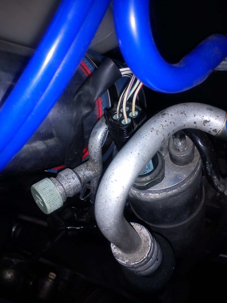 Затем нужно было поменять датчик давления хладагента на 4 контактный от 33 ская, иначе кондей бы не работал, соответственно пришлось переделать проводку.