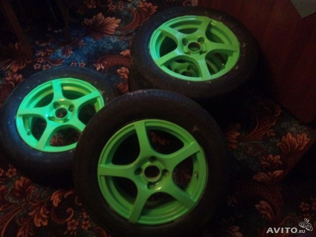 диски литые р-14 перед (Goodyear Gt-3 185/65 ) зад (Pirelli P-5000 185/60)таких больше нету ни у кого :- )