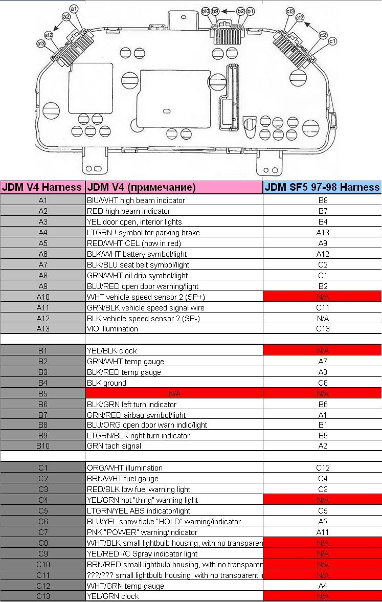 Снова в поиски эльдорадо… На сей раз тщательно все проверил по схеме, сравнил с положением проводов косы Форя и косы Импрезы, перепроверил что куда идет на панели Форя и куда приходит на Импры. Итог: Еще пара проводов сменила свое место положение — по видимому ошибся при перепиновке…