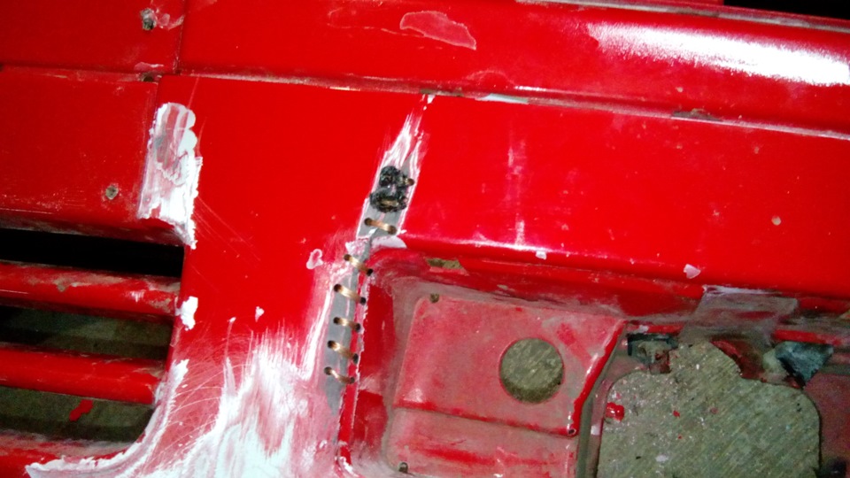 Бампер зашил медной проволокой, и решил до весны не шпаклевать, а просто задул из балончика чтоб не бросалось в глаза.Когда поставил радиатор и закрепил новый бачек усилителя побежал скорее заводить.