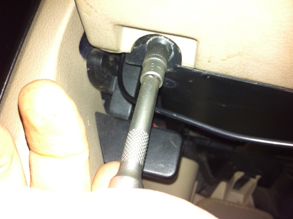 2. Снимаем накладку над ногами водителя, для этого откручиваем болт на торце торпеды и два болта снизу и аккуратно отщелкиваем накладку (тянем на себя).