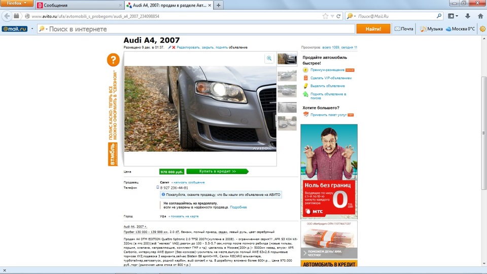Вот так вледелец Уфимской ДТМ не мудрствуя лукаво запостил фото моей машины в качестве основной на своем объявлении.