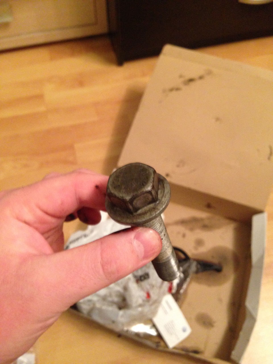 как помните в прошлой записи я выкладывал список, что надо купить, так вот оказалось, что еще необходимо для замены VAG WHT 001 760 болт с шестигранной головкой огромный такой, хз зачем вот мой старый на фото.вроде в идеале)) но слава богу стоит не так много всего 122р