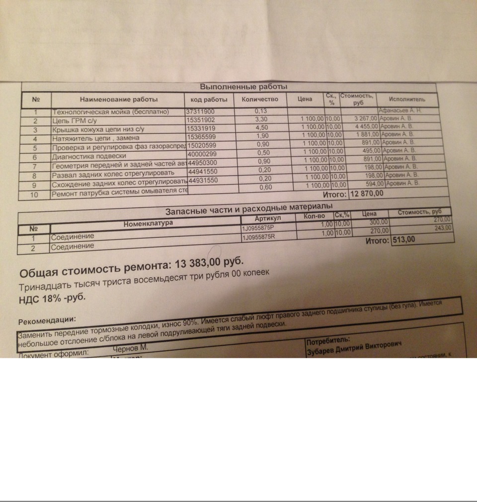 итог замены цепи у оф. дилера со своими запчастями 20110р