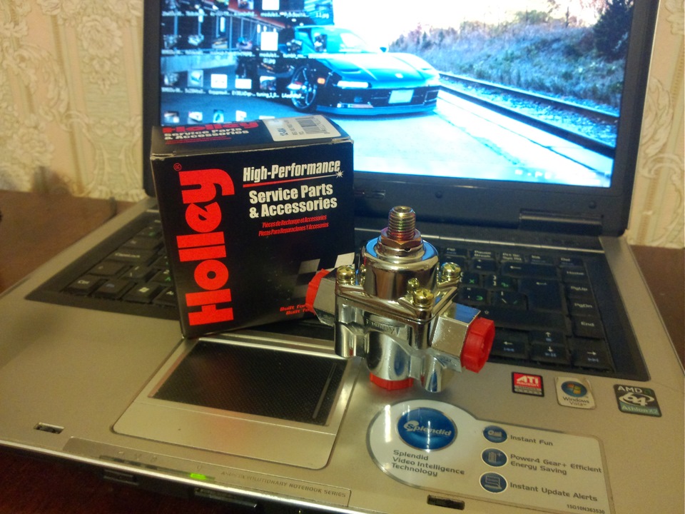5. Регулятор давления топлива Holley. Был заказан с ebay в начале декабря, ожидал его где то в феврале, но произошло рождественское чудо и он приехал через 3 недели, в общем до нового года. В данный момент он уже установлен. Произошел инцидент неприятный из за родного обратного клапана (боченок который), но об этом думаю расскажу в следующей записи.