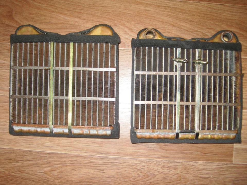 Но благодаря совместным усилиям мы справились. Сняв старые радиаторы убедился, что я не ошибся с диагнозом. Пассажирский почти не продувался, водительский был в чуть лучшем состоянии.