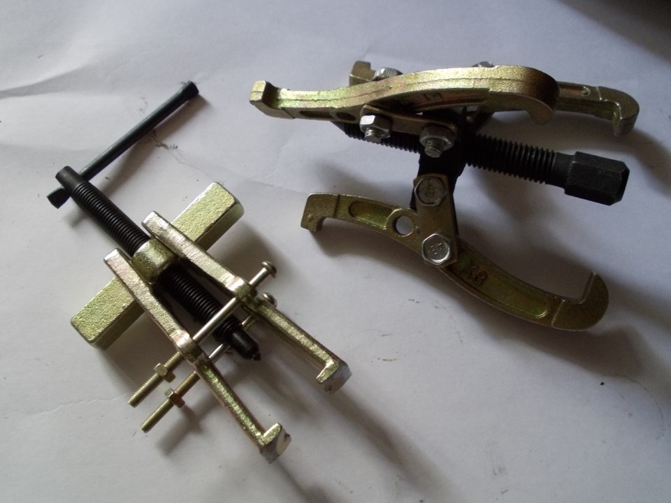 Для того чтобы разобрать корпус генератора и снять подшипники с вала я использовал съёмник, тот что слева на фотке: