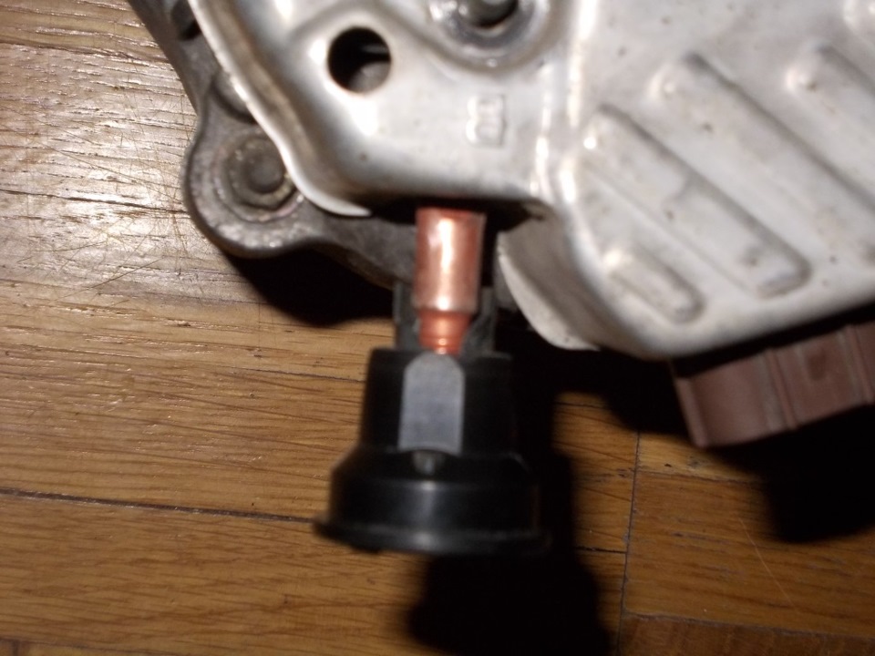 И ещё немножко обломили изолятор плюсовой клеммы, т.к. она тоже немного отличается от клеммы на оригинальном диодном мосте: