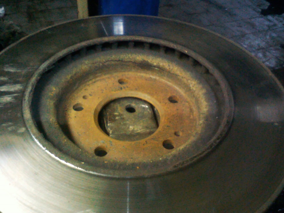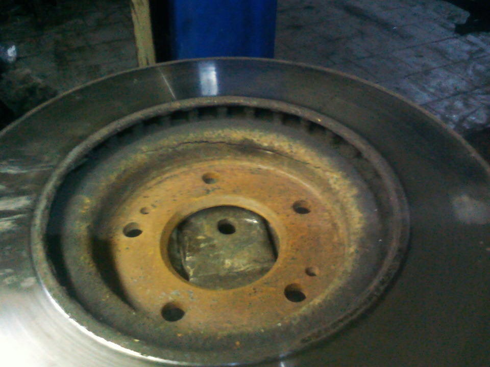 Так вот теоретически дорожка могла образоваться в результате смещения тормозного, а при подробном осмотре оказалось что диск не просто кривой, а он лопнул.