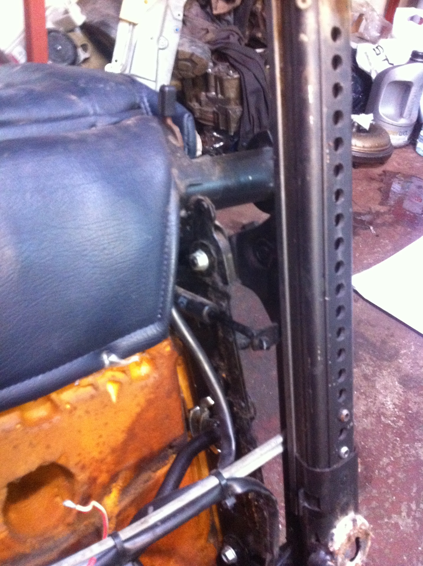Пам.Все наверно на каком то этапе сталкивались с изменением своего вида, с годами все под уставшей и по ушатаней, а особенно кожа))).Кожа салона имеется в виду, ну и в этот момент приходит выбор купить новую тачку, поменять салон, перешить салон.Конечно купить новую тачку!Вот так вот, и вместо вас купят кого то поновее.Но для меня это еще и скучновато, я не знаю что делать с новым кросом или 80 2.4 атмо, поэтому на них ездят мои родычи и пишут как они постирали коврик или пропылесосили.А мне как бы пофик что пилить поэтому я люблю по старее и по металлически, к стати в кросаках филеночка уже не та, и деталющек поменьше и вместо болтиков уже заклепки, но то такое…Может поменять салон!ну да с такой же тачки за 300 тыс.на такой же ушатаный.Перешить салон! ну да от 1500 у.е.Ну и тут может не все устроить, как по материалам, так и по содержанию, ну вот захотелось мне например оба электро сиденья!тяжеловато 70 родные найти такие.Поэтому давайте пойдем другим путем возьмем два донора 60 одну европейку другую ангичанку и вытянем с нее по 2 электро сидухи))).Как подключить и установить электро я расскажу в следующий теме, а здесь напишу как я ставил обычные механические.Моменты которые нам нужно изменить, 1.Направлялки(полозья)сиденья с 60 длинее чем на 850(70) примерно на 70 мм.2.Крепления задней части в 60 оба под 45 градусов паралельно, а в 850(70) одно расположено так же, а второе, ближнее к двери, стоит строго в низ.3.Шплинты центровочные в 60 в передней части с обеих сторон и они толще чем в 850(70).Вроде с отличиями все.Вмешательства в кузов я делать отказался поэтому переделал сидухи.Ну и так как полозья из цветного сплава то я отказался от сварки и т.д.И так понеслась.1.Высверливаем по 2 заклепки на каждой лыже 60, которые держат задние крепежные уши, и снимаем скобы с ушами.2.Высверливаем со старой (850) сидухи ухо которое расположенно прямо.3.Отрезаем от 60 полозьев по 70 мм с обеих сторон.4.Снимаем с 60 полозьем с обеих сторон часть направляющей на длину крепежного уха.5.Устанавливаем крепежные уши с одной стороны родное с другой с 850(70) надеваем фиксирующие скобы.6.Ставим шплинты или прихватываем сваркой, кому как нравится.7.Убираем центровочный шплинт с права, и корректируем толщину шплинта с левой стороны.8.Устанавливаем сиденье.Для общей картины пару фото. Эта процедура установки делалась вместе с электро сиденьем поэтому процесс переделки был такой, для тех у кого просто механика, достаточно просто открутить 4 болта и снять аморты уровня, после чего салазки 850(70) поставить на сиденье S 80-60 и т.д.