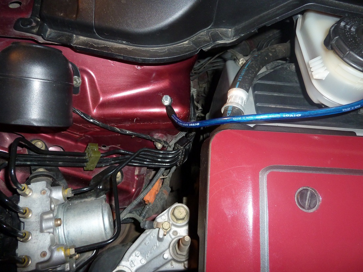 — первый провод разминусовки от аккумулятора проводим на кузов в районе таблички с номером кузова.