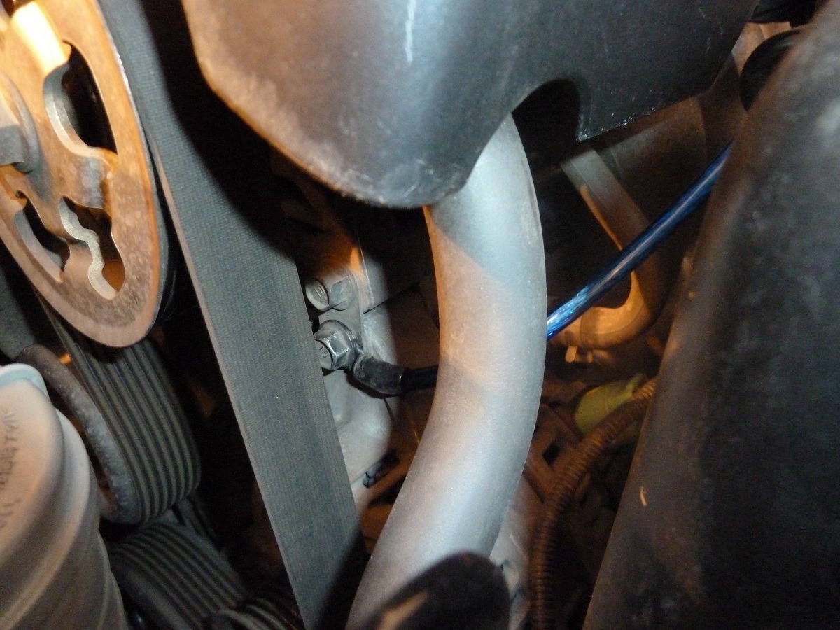 — Третий провод проводим к двигателю, под пластиковой защитой находим болт и подключаем к нему