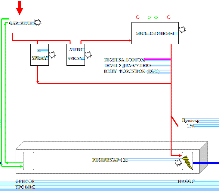 Autospeed Intelligent Water Spray — роскошнейшие мозги управления спреем кулера, с двумя темепратурными датчиками, цепляющиеся к форсункам топливным и отслеживающими манеру езды, обороты, разницу наружной и кулерной температуры, и поливающие только когда надо (причем степень реакции настраивается)