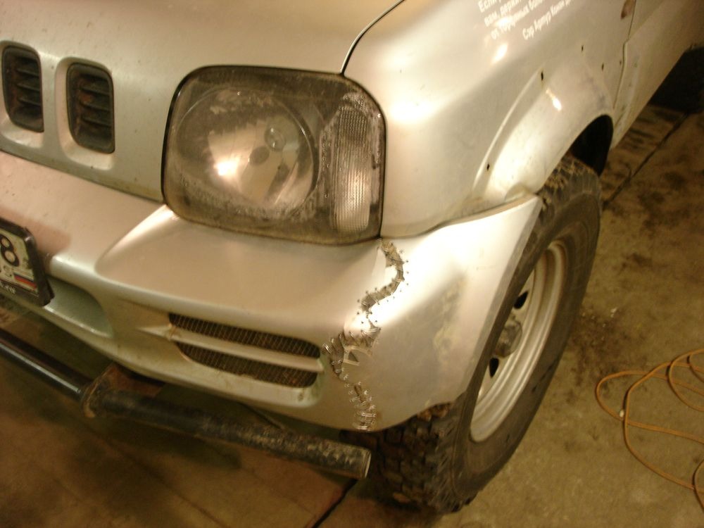 А далее я решил восстановить свой бампер) Угол у меня был оторван на Алюляевой Топи, поэтому его нужно было каким-то образом пришить) Именно этим я и решил заняться, в прямом смысле слова — сшил бампер)