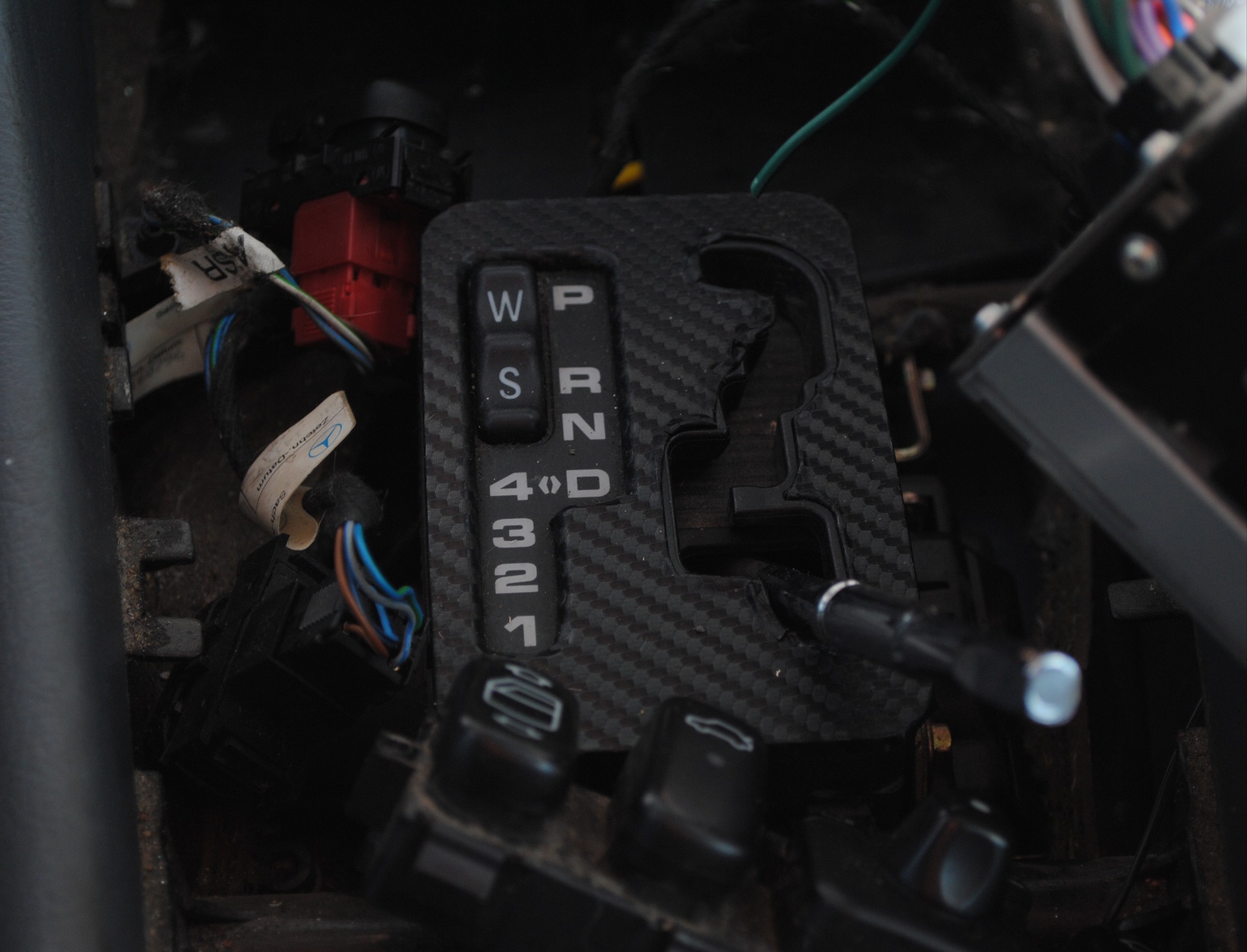 Обратите внимание, как обклеена панелька, с вырезами под ходы ручки АКПП. Загнуть края внутрь было большой ошибкой =))
