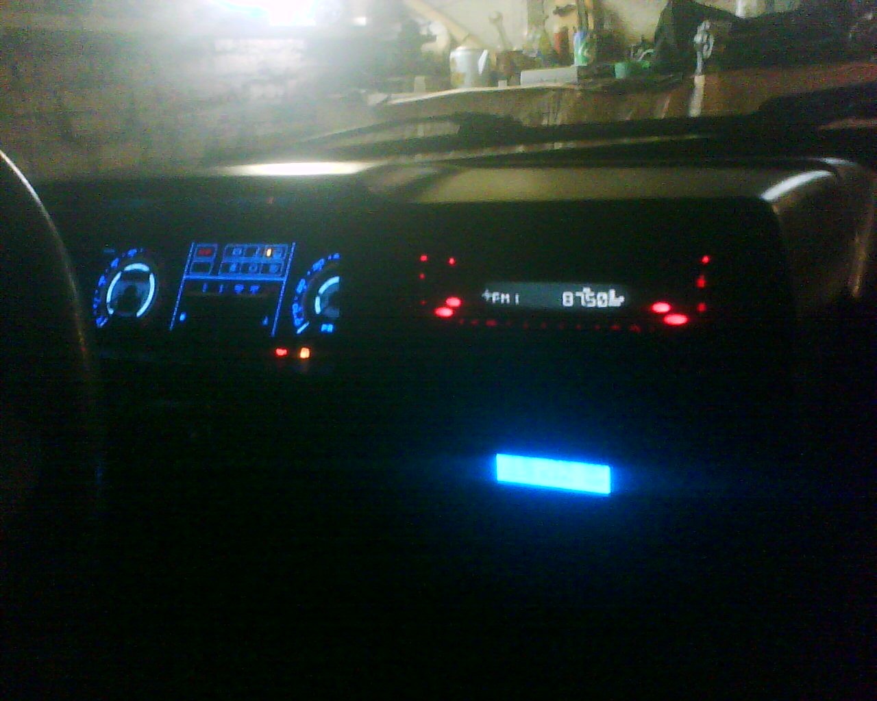также приобрел накладку люминисцентную на панель, по дешевке досталась, за 500 рэ, оч нравится как светит, жаль стрелки не подсвечиваются