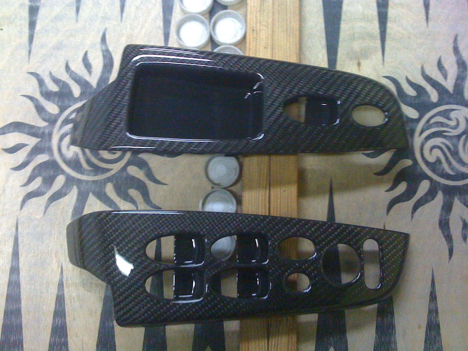 добавил немного карбончика в салон-передние и задние кнопки стеклоподъемников-облицовка кпп-вставка на руле (пока в процессе)