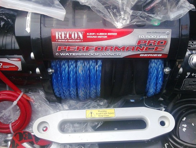 .Если обратите на лэйбл внимание, то увидите мощность э/двигателя -6,5л.с., обычно лебедки такого класса комплектуются моторами 4,8 л.с., за счет этого было уменьшено передаточное число редуктора, всего 3-ступени ( 1:218, на других 1:256 ). Лебедка имеет более высокую скорость при расчетной нагрузке, чем лебедки c таким же тяговым усилием. Редуктор на самом деле не маленький, по крайней мере его диаметр примерно равен диаметру барабана с намотанным кевларом. Это наверно просто на фото так выглядит (оптический обман). Все детали включая корпус соленоидов -металл, за исключением пластиковой верхней крышки э/двигателя . Компания RECON образована в США группой энтузиастов офф-роад движения . Кроме этого производят другое офф-роад оборудование в основном для Американских траков и джипов Обошлась около 40 рублей.