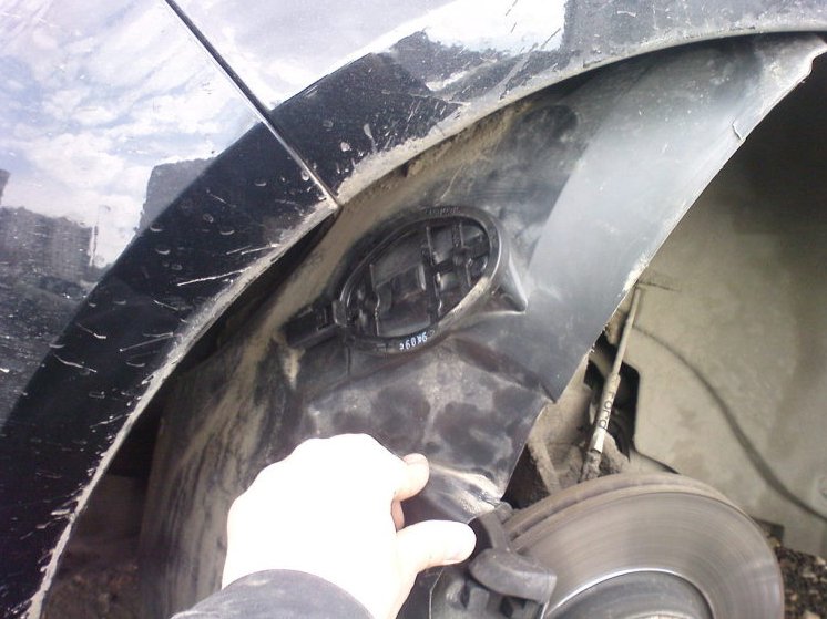 Сзади — нужны специальные детали-кронштейны, там антенна крепится не к подкрылку, а к кузову в котором есть специальные овальные отверстия — куда и втыкаются кронштейны.