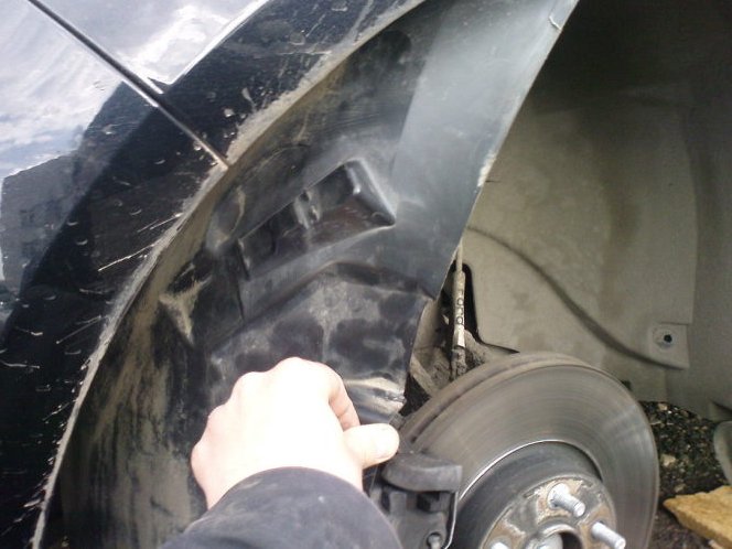 К переднему подкрылку — обычные саморезы, я брал алюминиевые, с широкой шляпкой.