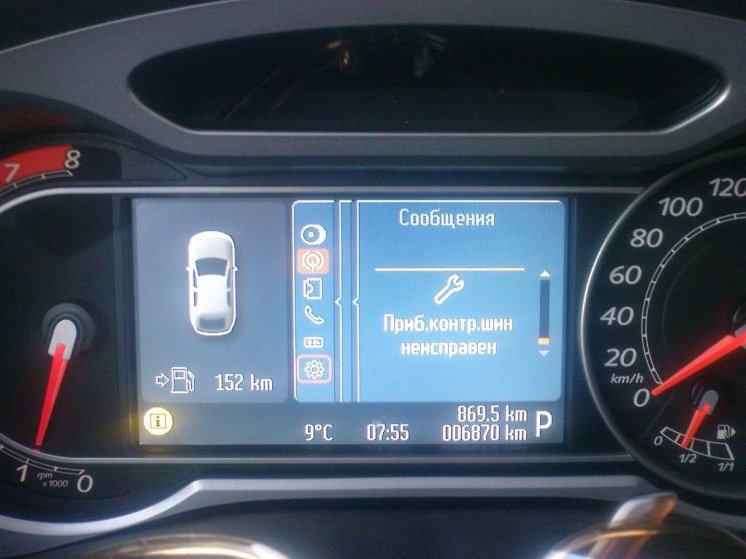 Но, радость оказалась не долгой. В процессе поездки домой после активации системы, выскочила ошибка – «Система контроля давления в шинах не исправна, обратитесь к сервис»