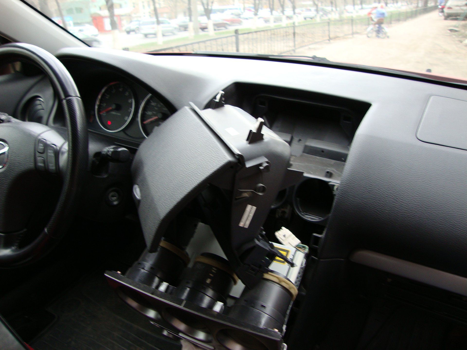 Порыл форумы, нашел как разбирается панель и принялся за работу. Кстати, вся панель аудио/климата крепится всего на 3 болтах и нескольких защелках. Зато сидит очень крепко.
