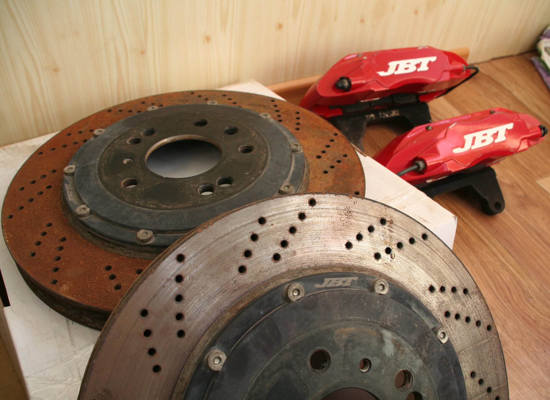 К слову, вес системы JBT на 1 кг меньше, чем стоковых чугунных мелких тормозилок, что тоже позитивно сказывается на поведении машины. А как красиво они смотрятся на красном авто, а?