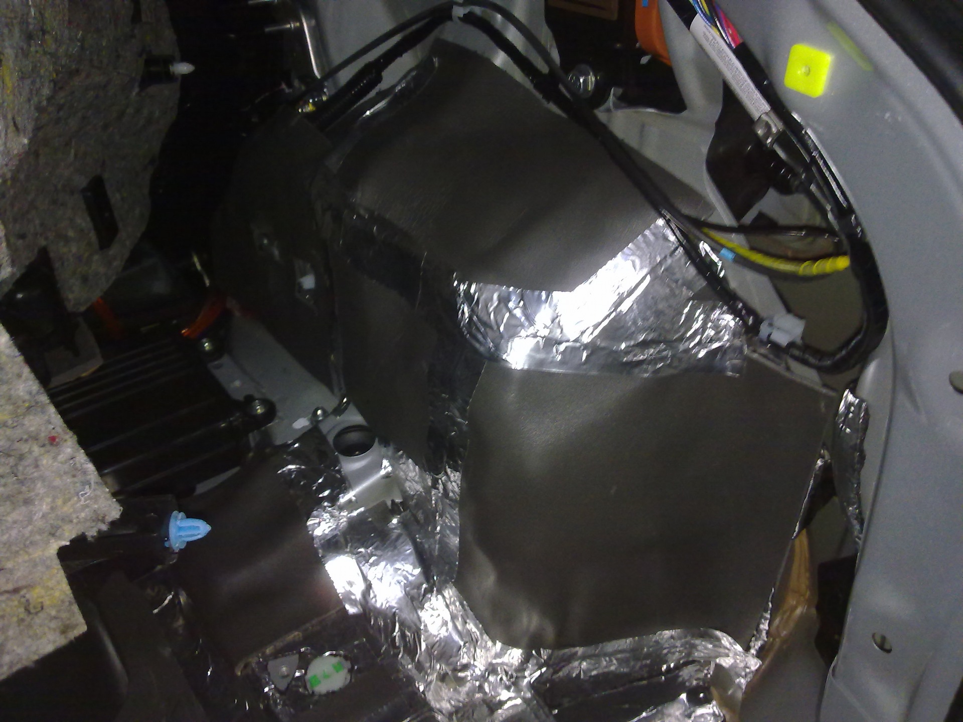 При установки музыки паралельно велась работа по шумоизоляции.Двери сфотографировать не удалось, т.к. меня просто не было тогда, когда их клеили.