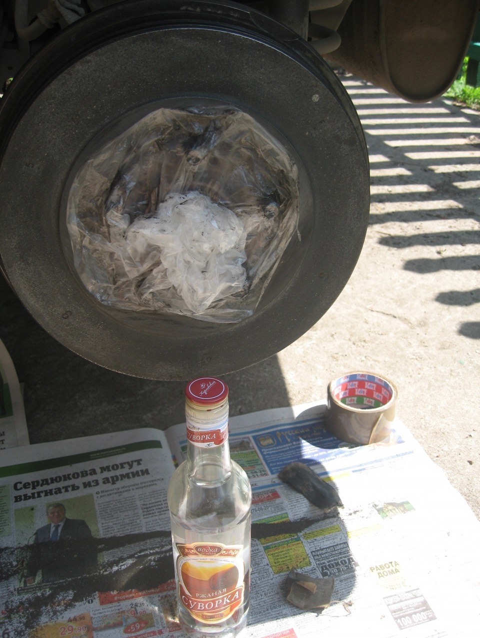 И вот суббота, солнечный день, суббота, отдыхаем три дня – вряд ли еще такой случай подвернется. Под рукой имеется все необходимое: металлическая щетка, шкурка, газеты, пакеты, малярный и обычный скотч, сухая ветошь, ножницы, грунтовка, краска и спиртосодержащая жидкость для обезжиривания поверхности. Приступаем к работе!