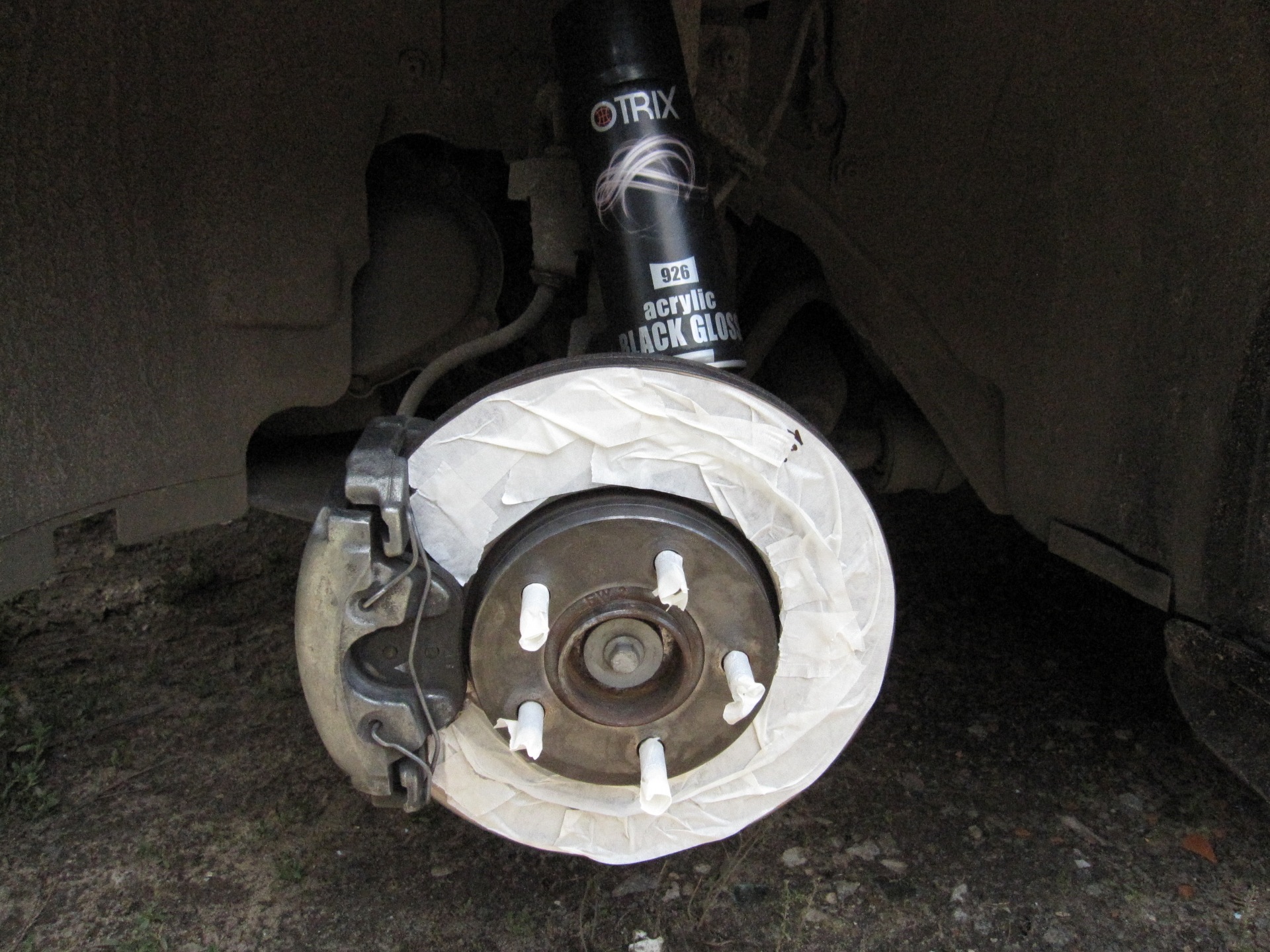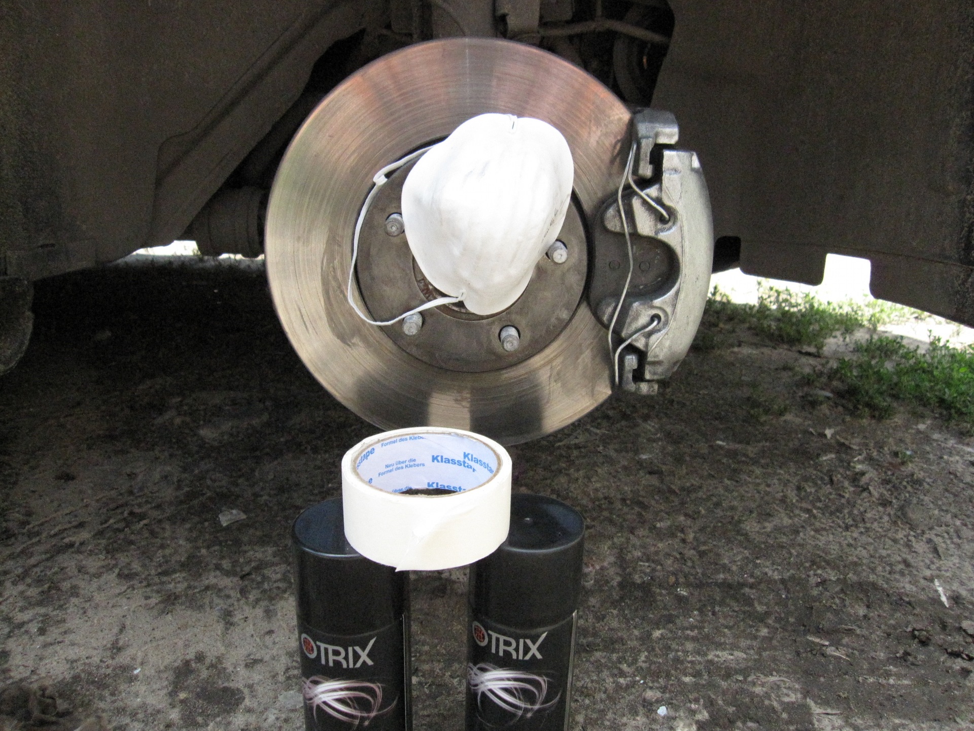 а зачем вы диск тормозной скотчем заделали?)) даже если Вы его покрасите, он все равно сотрется, лишний труд)