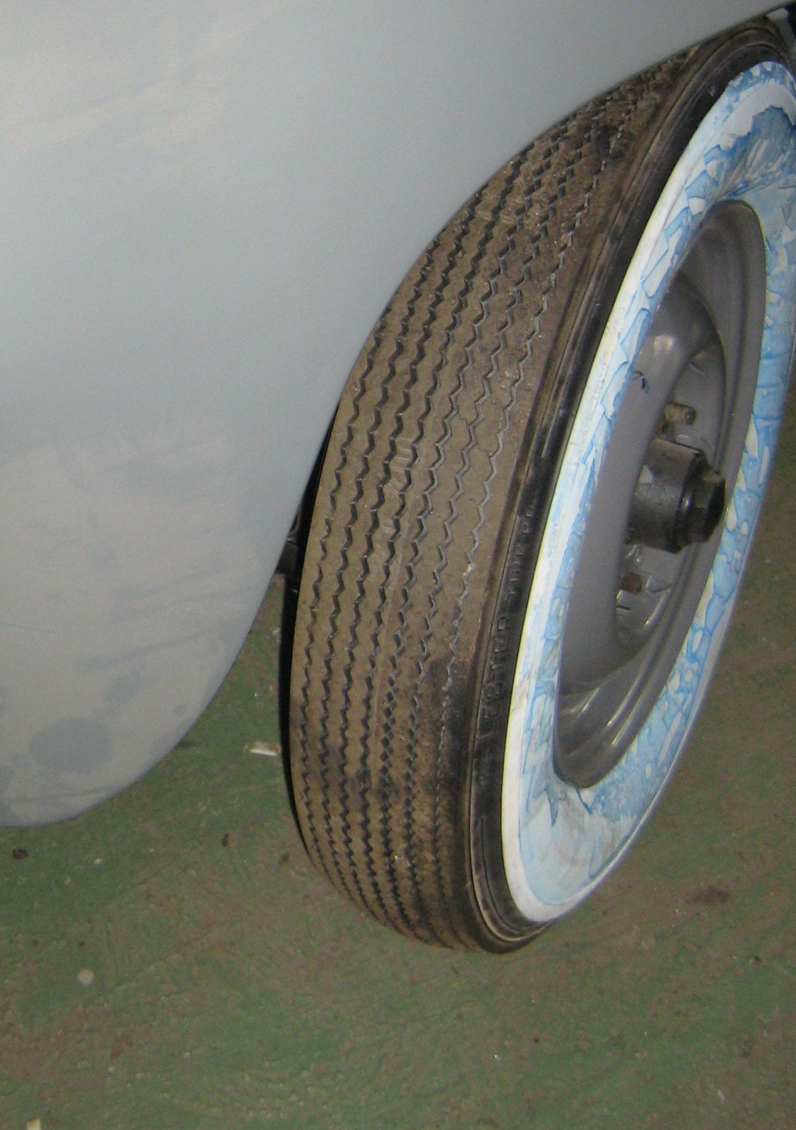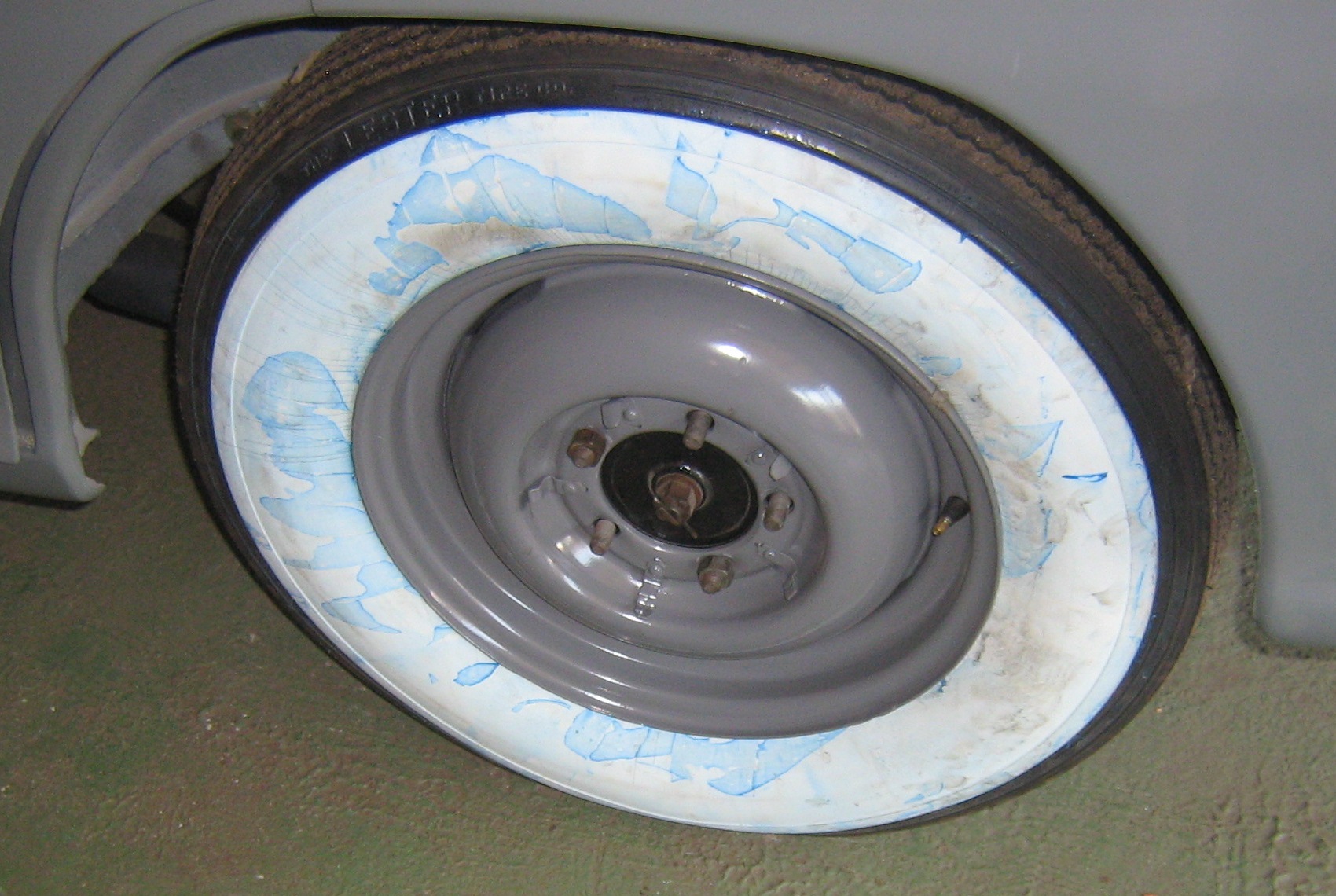 Синяя краска на шине специальный консервант, смывается после шиномонтажа обычной водой .но пока повременим, почистим окончательно перед выездом …