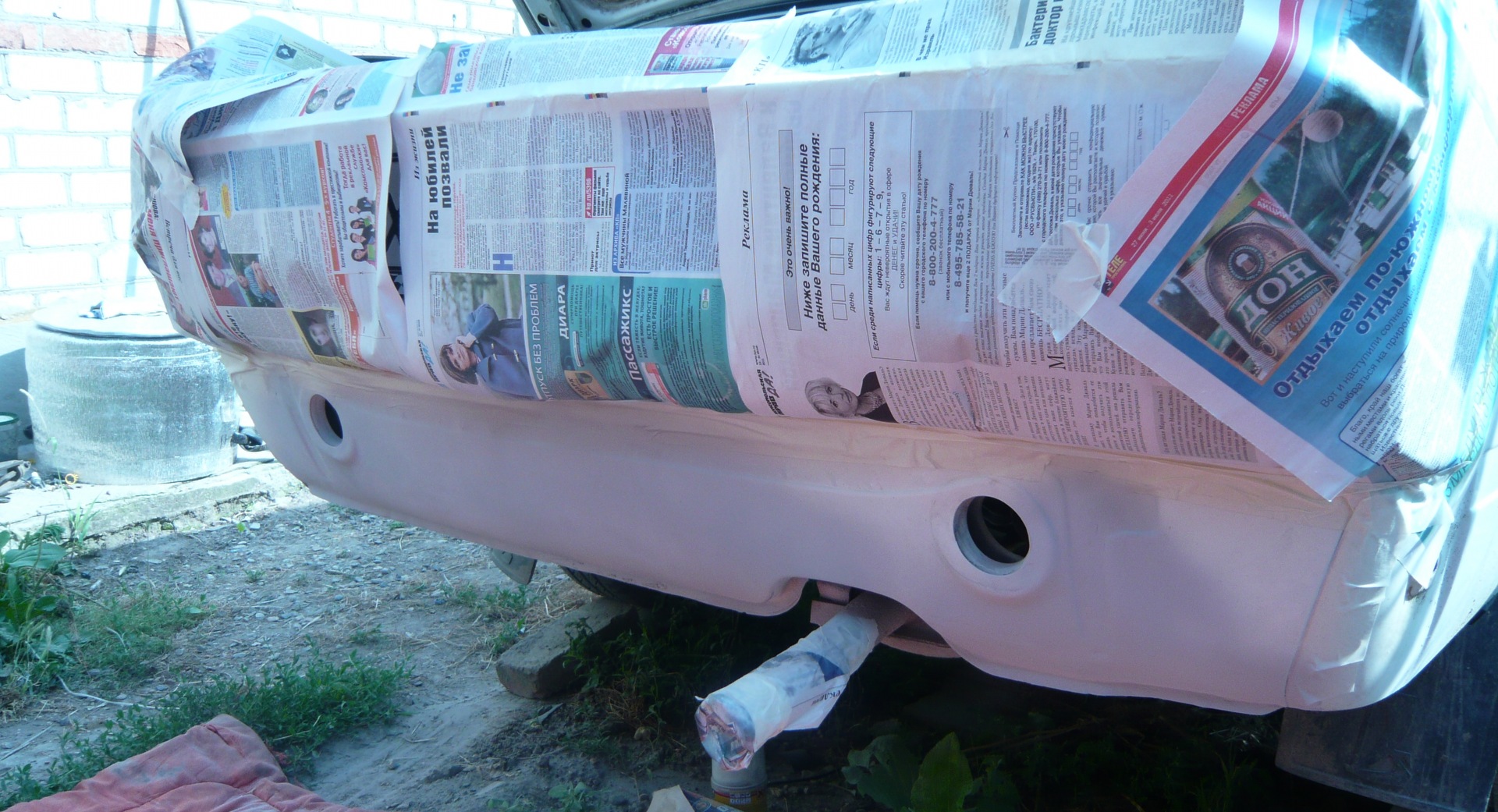 Потом покрываем антигравием, красим, ну и ставим бампер на свое законное место