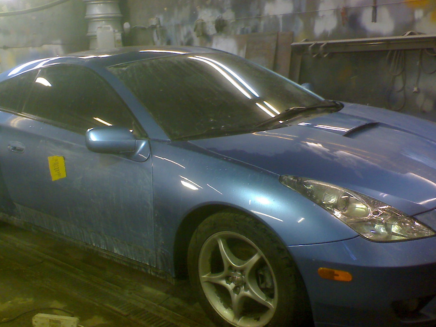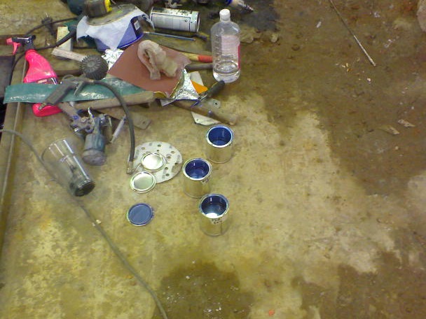Наконец с цветом определился и пришла пора приступать к собственно самой покраске) а точнее к разбору машины) скинуты двери, капот, багажник, фары, люк, бампера, спойлер, все молдинги, разобран салон. одну форточку пытались срезать но в самом конце она подло лопнула) другую форточку пытались разбить… 15 ударов молотком и как итог сломанная рукоятка молотка… форточка была выбита только после 5-го (!) удара кувалдой.