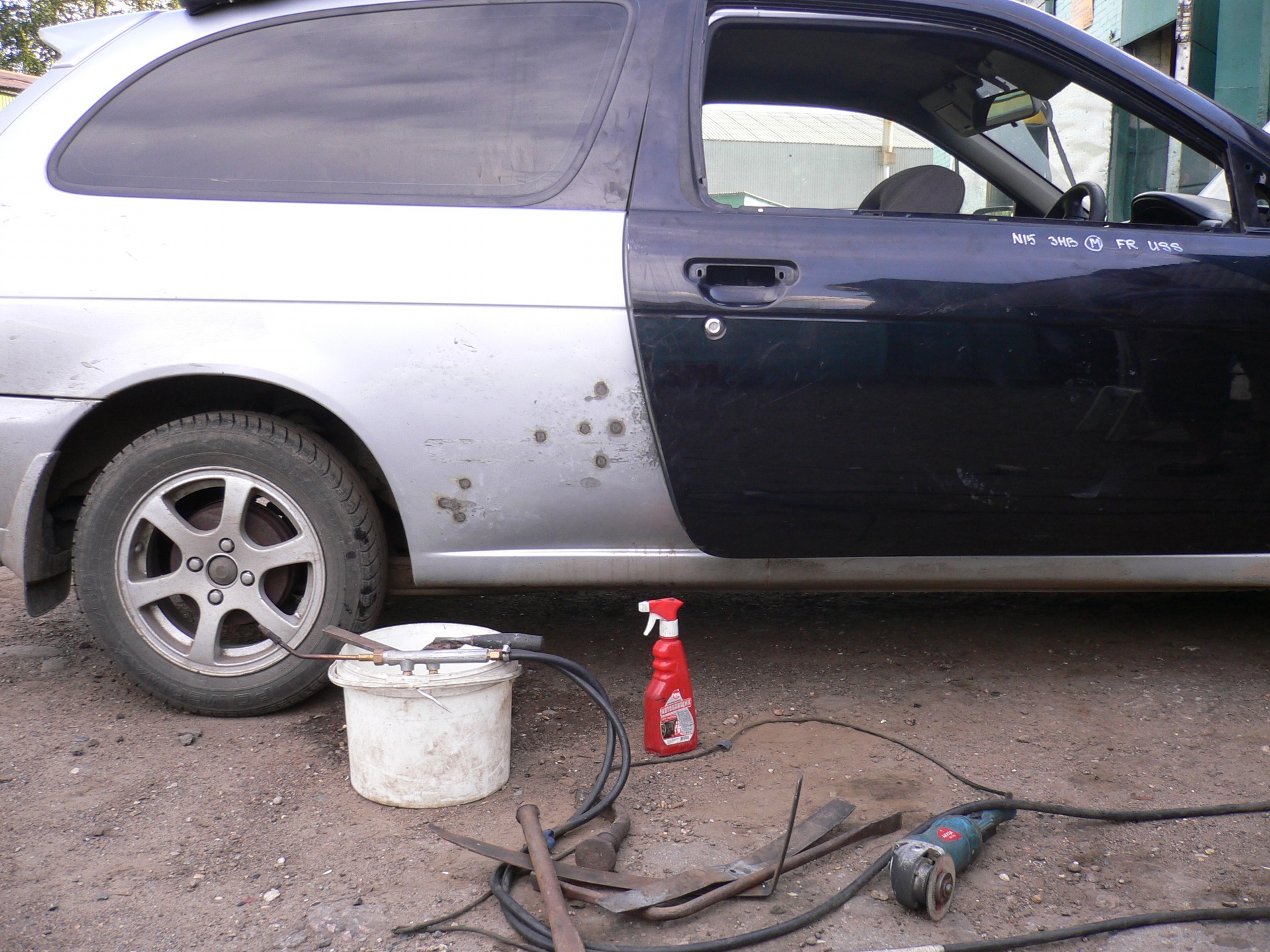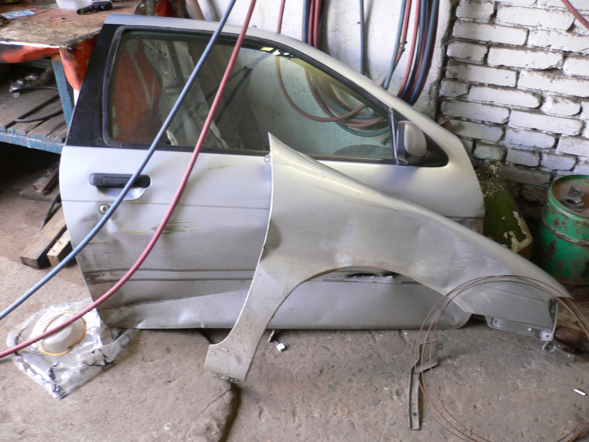 Ближе к теме как говорится, поехал в сервис отдать денюшку за материалы и краску, работа уже кипит у них, сняли бампер передний он на подготовке к покраске, дверь поставили и крыло-для регулировки зазоров, вытянули задние правое крыло, вообщем замолкаю смотрите фото)))