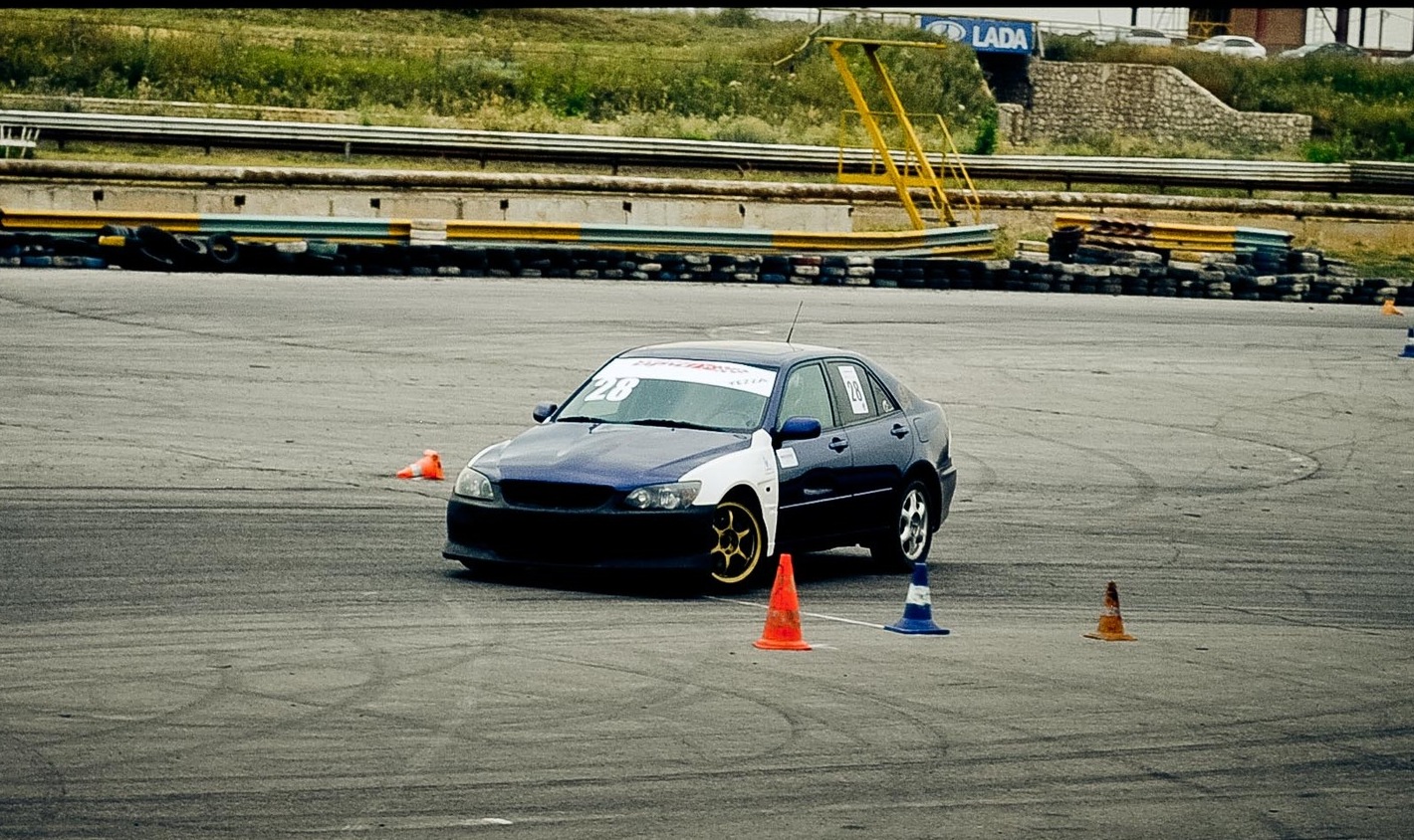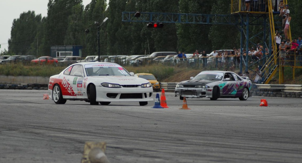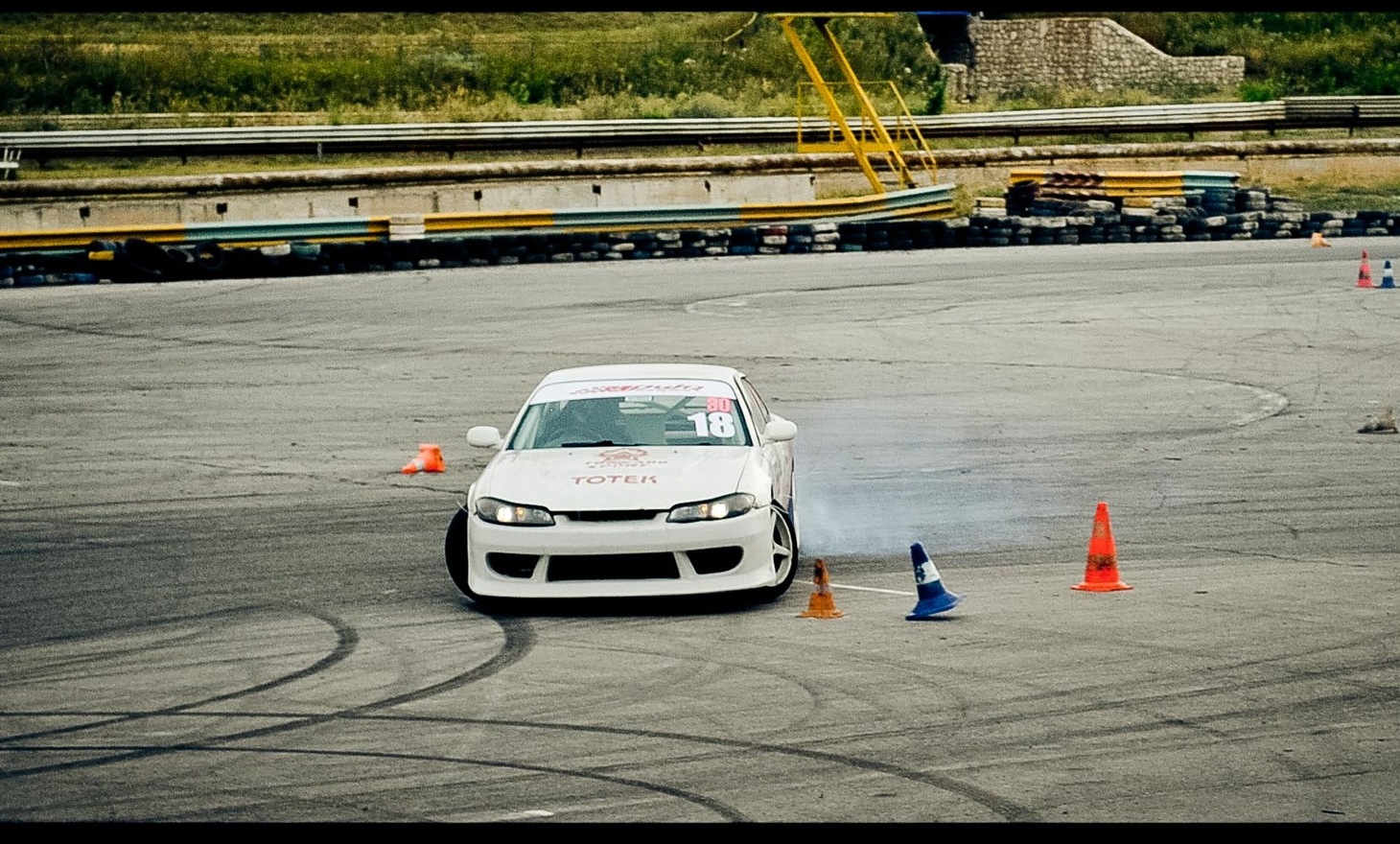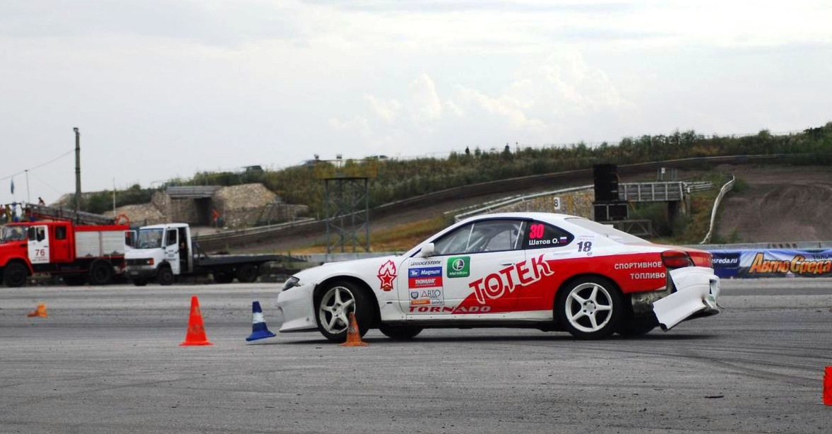 Первое и основное, что мне не понравилось в данном мероприятии, это то, что тренировки были назначены на пятницу, а по сему работающие иногородние участники были лишены возможности нормально потренироваться. Вот и наш (Казанский) десант высадился на автодром КВЦ только в субботу поздно утром. И причина не в том, что проспали свой выезд (выехали в 2:30 ночи), а в том, что по пути чуть было не сгорел один из боевых аппаратов — Лексус Айвара Мустакимова. Так толком не выспавшиеся и голодные пилоты TatDriftTeam бросились навёрстывать упущенное, но счастье длилось недолго — тренировки вскоре закончились и дотренировываться пришлось уже во время квалификации. Тем не менее ребята отквалифицировались неплохо — мой занял 9-е место. Судя по фотографиям, Тарас старательно облизывал клиппинги, пытаясь сбить все конусы синего цвета. Кто-то ему, видимо, сказал, что за это он получит дополнительные бонусы.