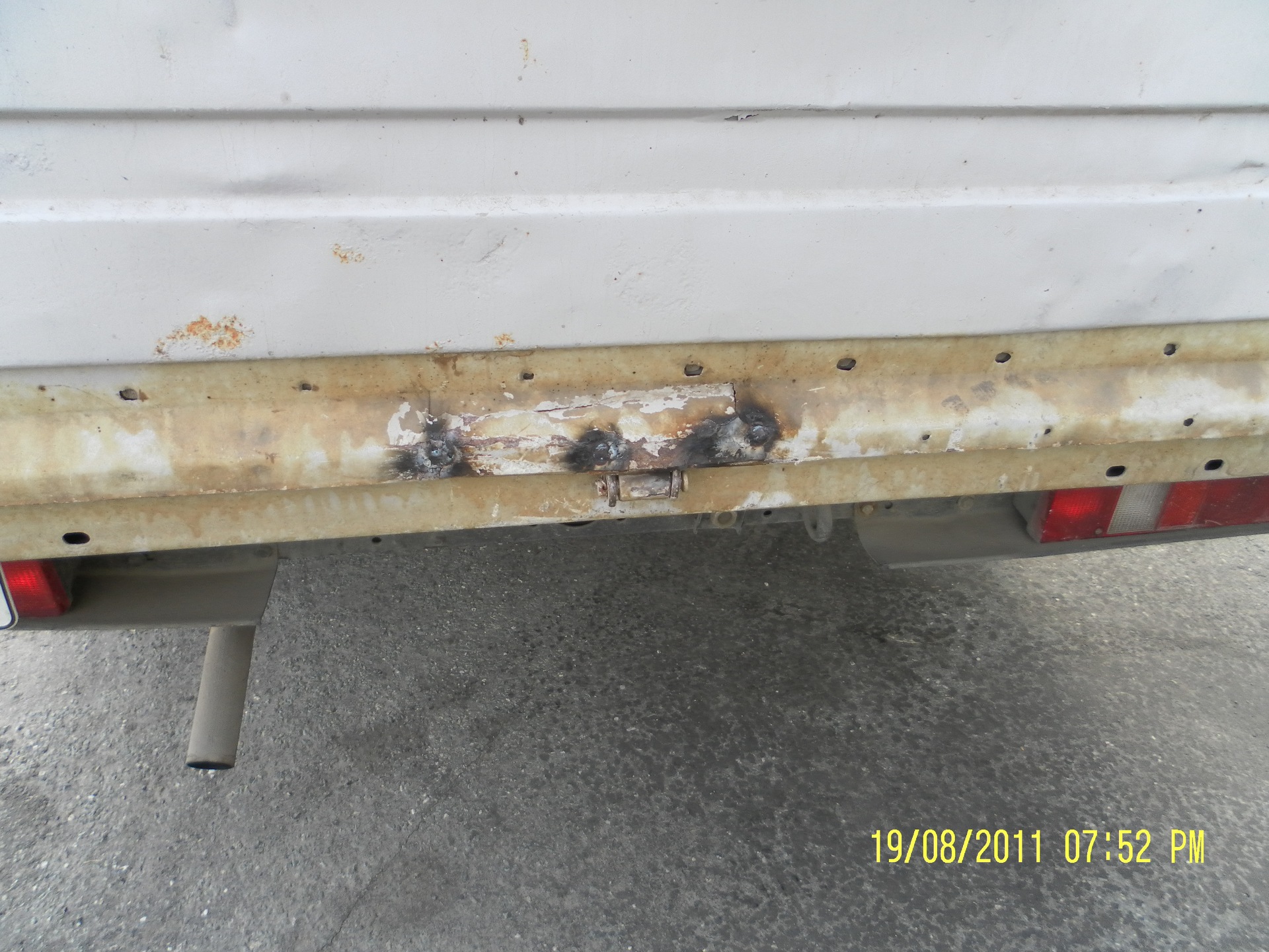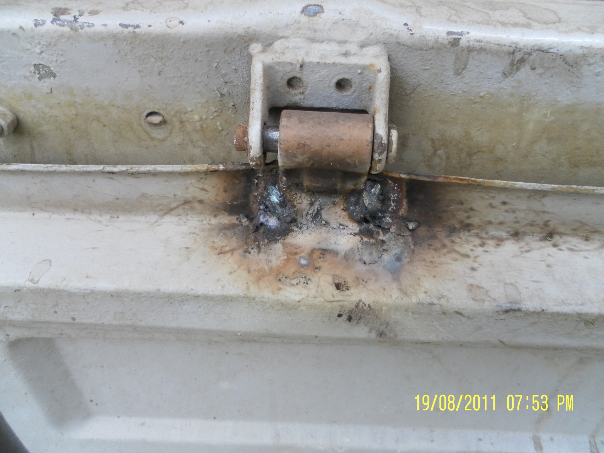 Как я ранее писал, и фото было, лопнула задняя дуга под тентом. Заварил всё профессионально. Да ещё и борт подварил немного. На задней крышке крепления треснули немного.